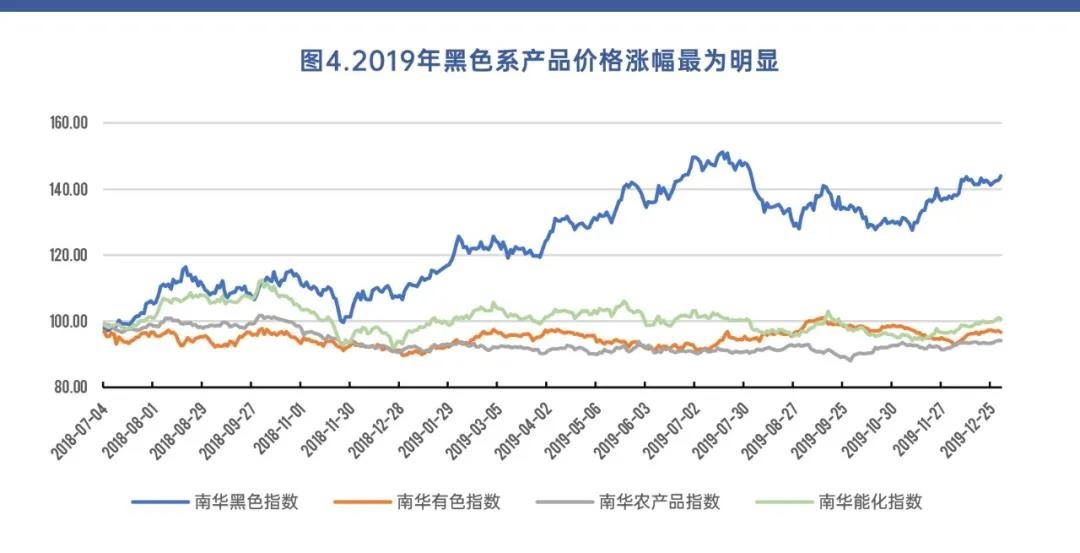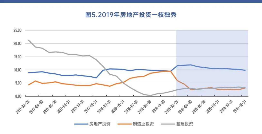 相比于能化和农产品,黑色和有色在需求端相对更强一些。本轮经济复苏中,投资强消费弱的特点非常明显,且在投资中房地产表现最为抢眼。类似的情况曾在2019年出现过。2019年中国宏观经济整体偏弱,大多数宏观经济指标都处于下行区间。固定资产投资中,制造业和基建投资表现不佳,只有房地产投资一枝独秀(图5)。这种经济格局下,黑色系产品相对其他工业品有非常明显的涨幅(图4)。出口是拉动中国经济快速复苏的另一个主要力量,它对主要工业品需求的拉动作用都比较明显,但对农产品影响不大。大宗商品的差异化表现也可以在部分程度上解释为何PPI没能向CPI传导。农产品和原油价格与CPI的关系更直接,而黑色和有色离得更远。