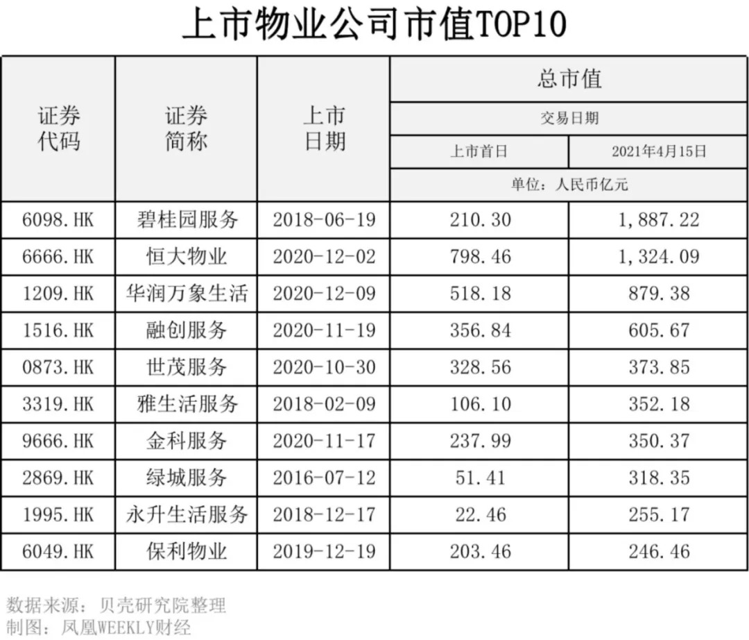 2020年,房企们把旗下的物业板块分拆上市,目前港股已经有40家物业企业,总市值从2020年初的2062亿元增加至2021年3月31日的8285.4亿元,基本上翻了两番。
