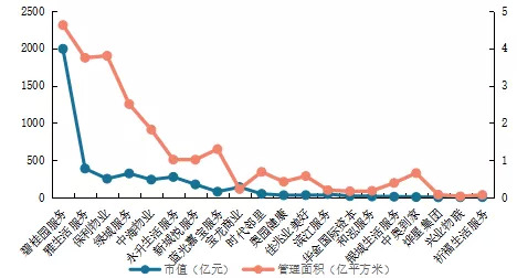 部分在港上市企业市值与在管面积关系(来源:中指研究院)。