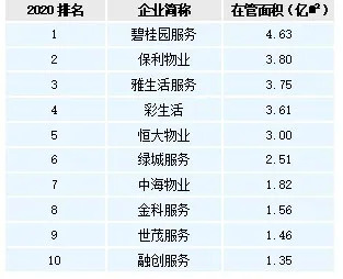2020中国港股上市物业服务企业在管面积TOP10(来源:中指研究院)。
