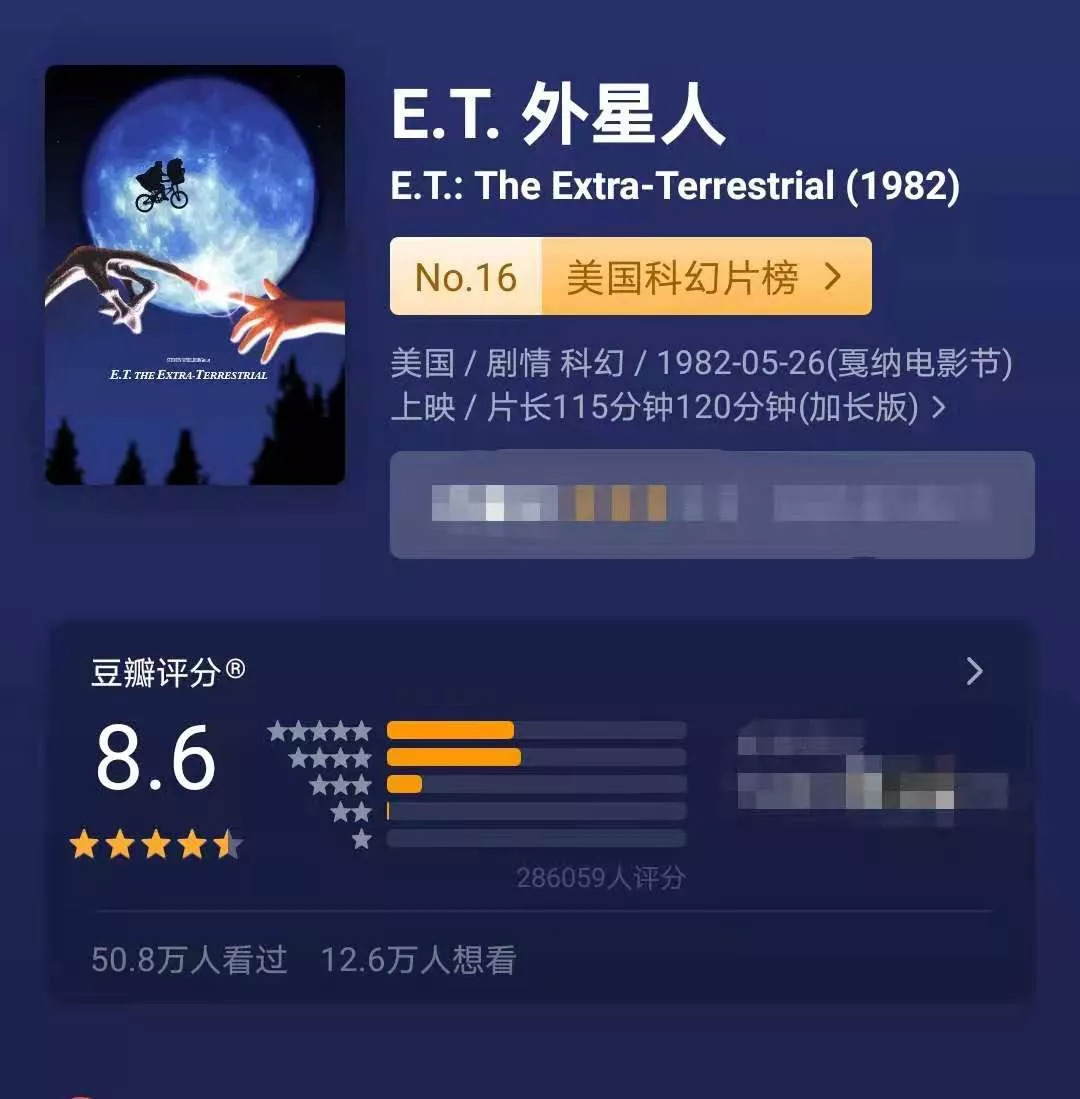 在当年获得年度票房冠军的《E·T》豆瓣评分8.6