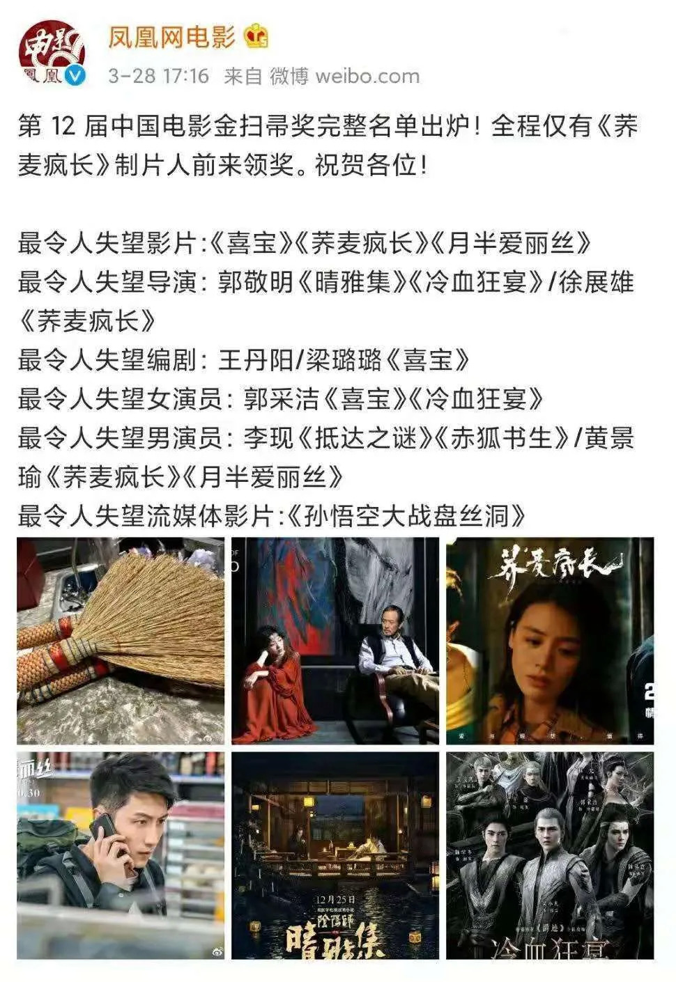 此时,仍然坐拥不少流量和关注度以及大批影评人和专业人士群体的金扫帚,或许可以提供更为专业的态度。
