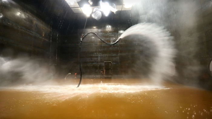 “他们建了一个大铁盒子,里面有高速喷水。在多哈也建了一个12米长、12米宽、8米高的巨大的铁盒子,高速喷水受铁盒子制约,一直在里面挣扎。自由这个主题大家一直都很喜欢表现……可是他们使用自己独创的语言谈论这个,(即使)在世界(范围内),它在理念上也有独到之处。”