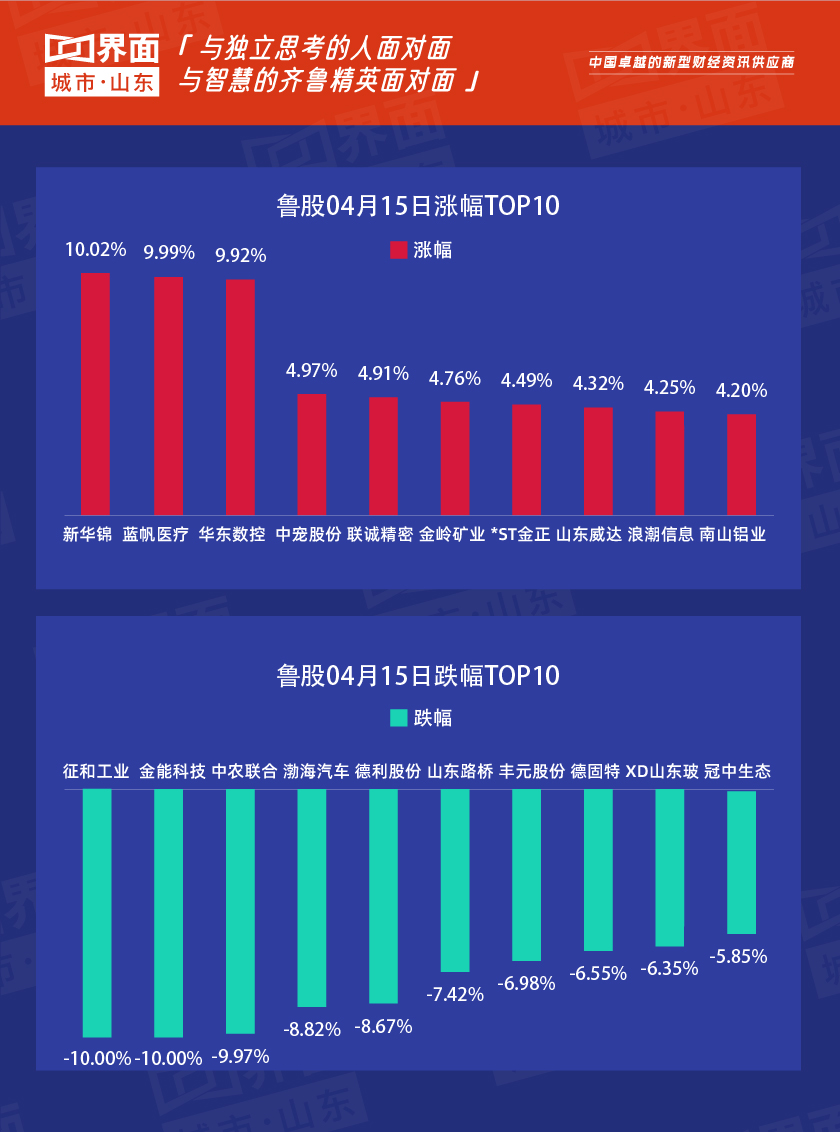 4月15日,山东102股上涨,7股持平,124股下跌。