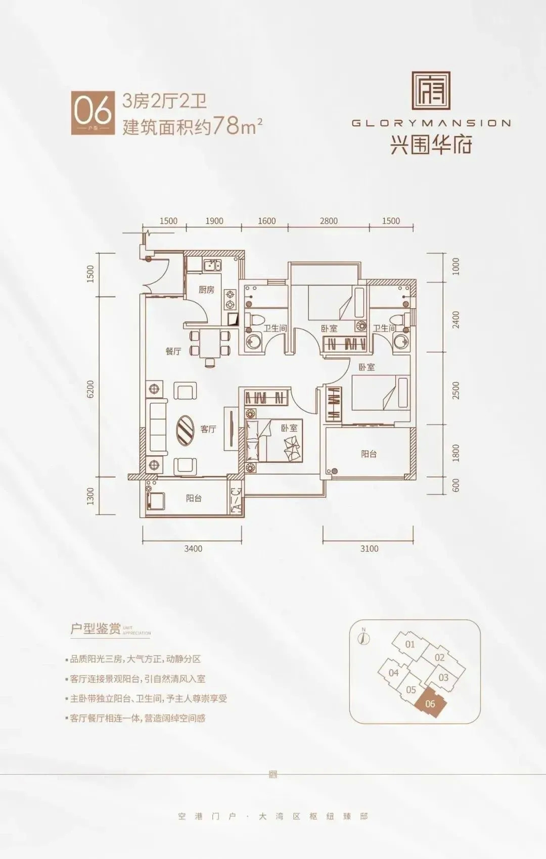 兴围华府的主力户型建筑面积约为66-94平方米,其中78平方米的户型可实现3房2厅2卫。