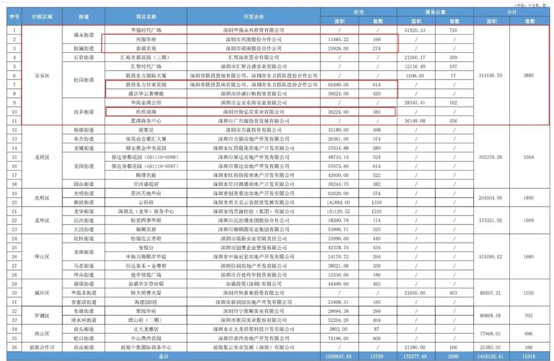 在这批计划入市的住宅和公寓中,宝安区共占据有11个项目中住宅项目共5个,集中在福永、松岗和西乡。其中最为神秘的要数兴围华府和玖玖颂阁了。