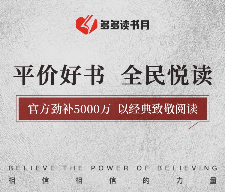 列夫·托尔斯泰曾说,理想的书籍是智慧的钥匙。4月15日,拼多多“多多读书月”宣布启动5000万元读书基金,联合数十家出版社、图书公司对中外经典名著、畅销图书等进行专项补贴。即日起,《史记》《万历十五年》《乡土中国》《社会契约论》《中国哲学简史》《飞鸟集》等上千款正版好书正式登陆百亿补贴频道,专项补贴书目中,优质图书价格最低可至每本2.5元。