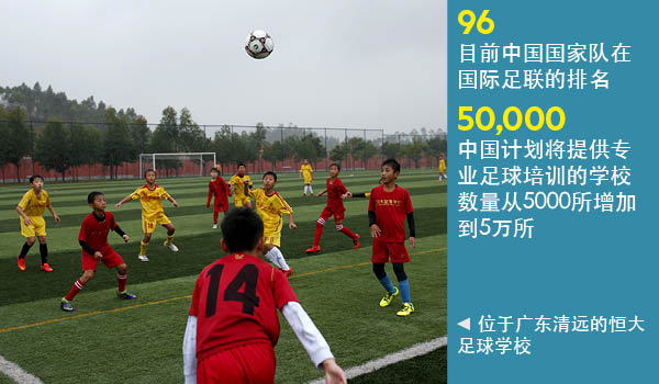 中国的最终目标是赢得世界杯举办权,帮助表现糟糕的国家队——世界排名第96位,位列法罗群岛和朝鲜之后——打入世界足坛最高水平的赛事。中国的大亨们——其中许多人都是房地产长期繁荣的受益者——正在提供自己的支持,包括大力投资中超联赛、创建足球学校、在国家管控放开后竞标电视转播权,以及收购一些欧洲顶级俱乐部的股权。