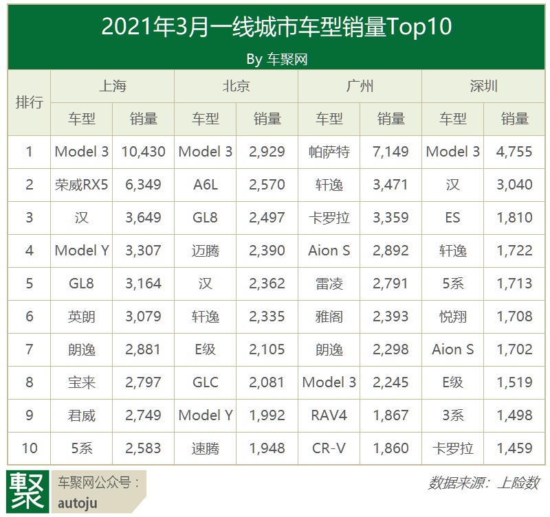 Model 3有多热销?以一线城市为例。