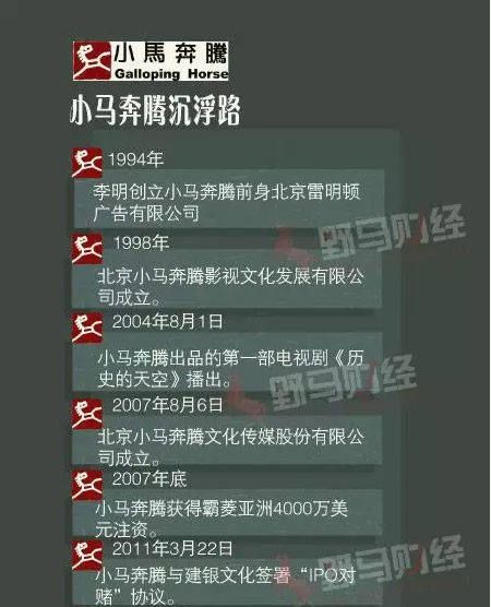 除了主体投资协议外,建银文化与小马奔腾实际控制人李明、李萍、李莉,还签署了一份《投资补充协议》,协议约定:若小马奔腾未能在2013年12月31日之前实现合格上市,则建银文化有权要求小马奔腾、实际控制人或李萍、李莉、李明中的任何一方一次性收购所持小马奔腾的股权。可以看出,这是一份俗称的“IPO对赌”协议。