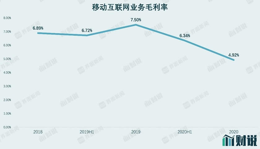 2020年,来自移动互联网媒体投放业务的收入增长9.17%,2019年增速为10.47%。基本保持稳定。但该业务毛利率却出现大幅下滑。2020年末,该业务毛利率为4.92%,同比下降2.58个百分点。而2020年中报时,该数据还是6.34%。