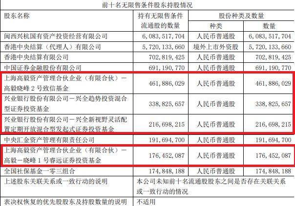 高毅资产旗下私募产品再度与公募基金大佬“反向操作”, 高毅资产合伙人、首席投资官邓晓峰所管的高毅晓峰2号致信基金一季度大笔买入紫金矿业4374.97万股,增持金额接近5亿元,同时他管理的高毅-晓峰1号睿远证券投资基金在一季度末新进紫金矿业前十大流通股东,两只基金期末合计持有紫金矿业超60亿元。