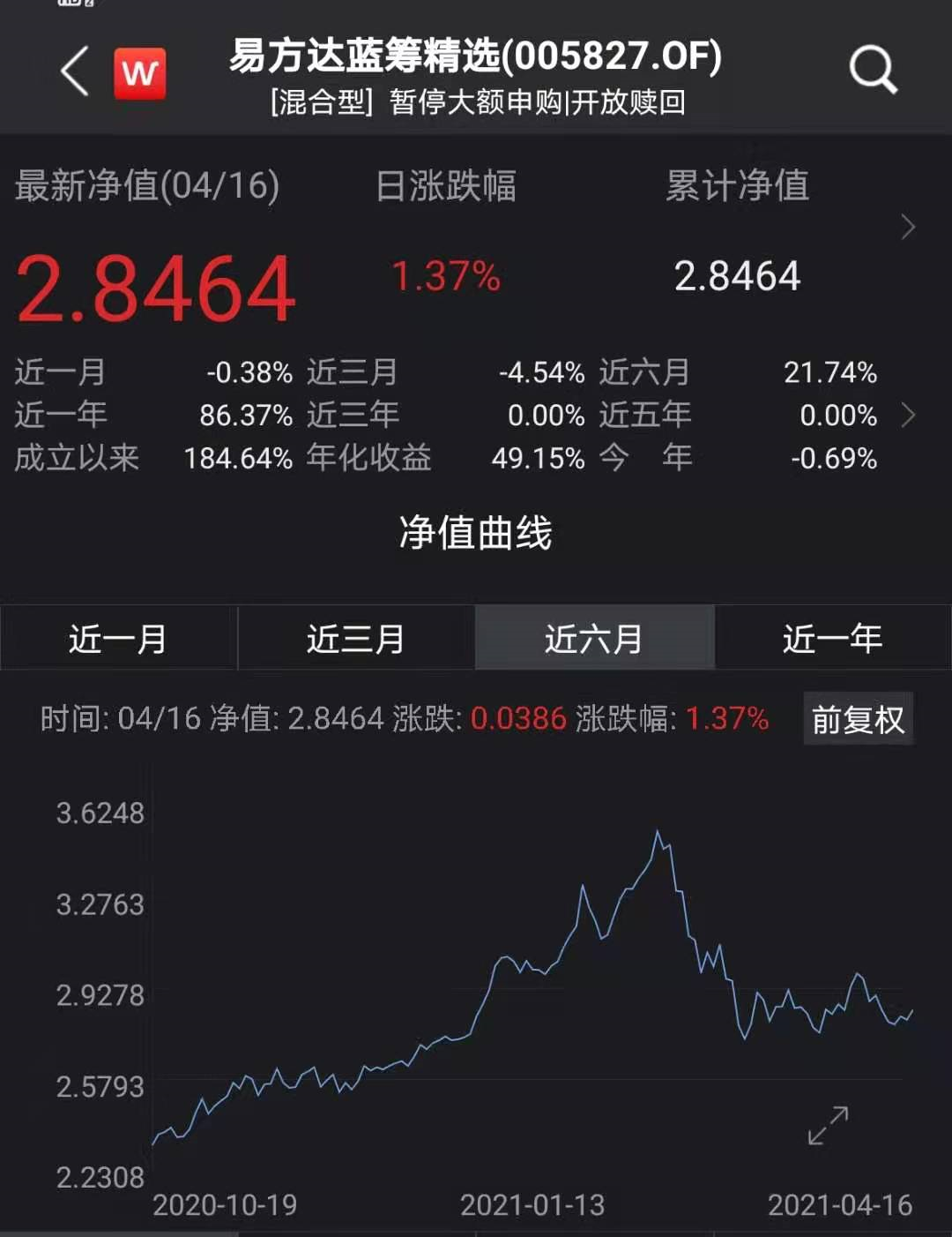 最新数据显示,易方达蓝筹精选今年以来跌幅为0.69%,春节(2月18日)后开市两个月跌幅为19.34%。