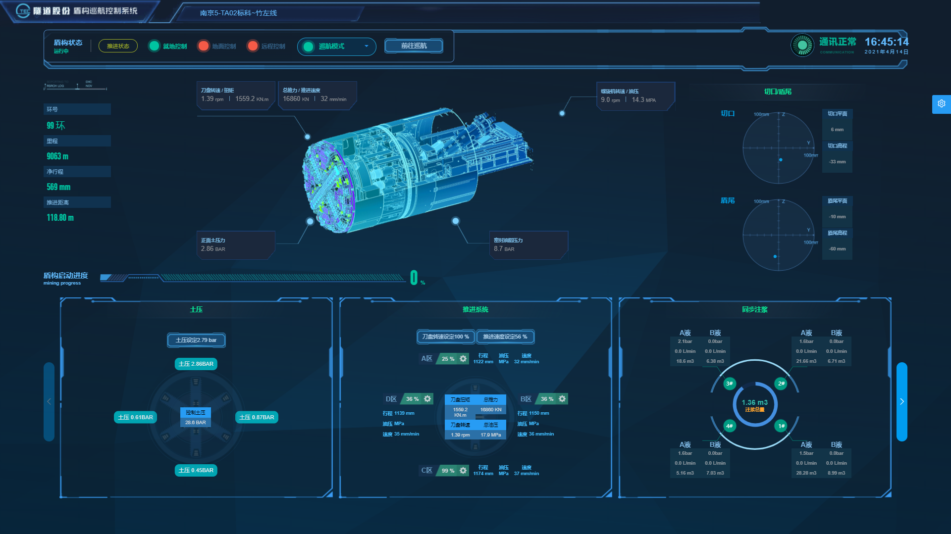 界面新闻了解到,施工现场的智能盾构和管控中心还建立了远程实时反馈体系,根据对施工环境的判断,工作人员可以让智能盾构在自动巡航和远程控制两种模式间切换,确保掘进的可靠性和稳定性。