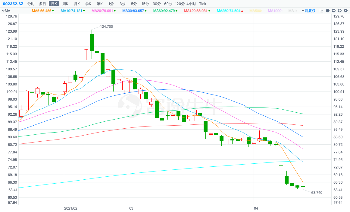 顺丰业绩暴雷,在跌停板上躺了两天,较2月的最高点,股价已经腰斩了,而且仍然在不断创出新低。