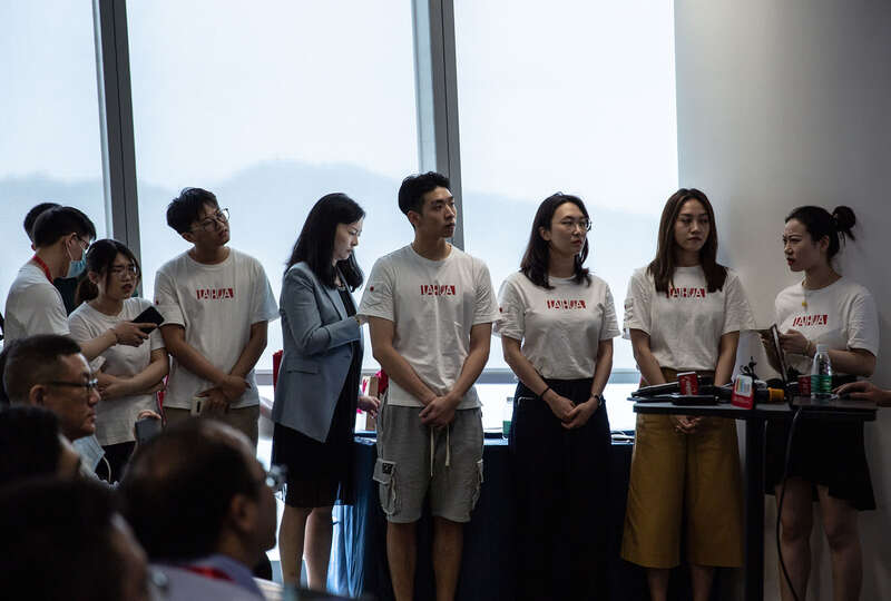 4月16日,深圳前海世贸大厦,一家创业企业里的香港青年员工们。这家企业里港籍员工数量约占3成。中青报·中青网 李峥苨/摄