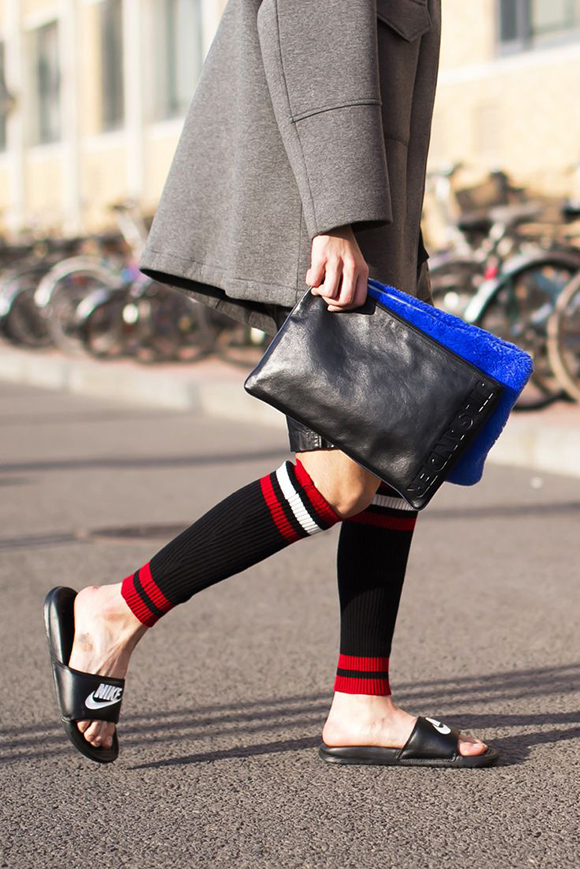 比起浅色凉鞋,深色拖鞋的不正式感似乎更强,换上它立刻进入备假状态: