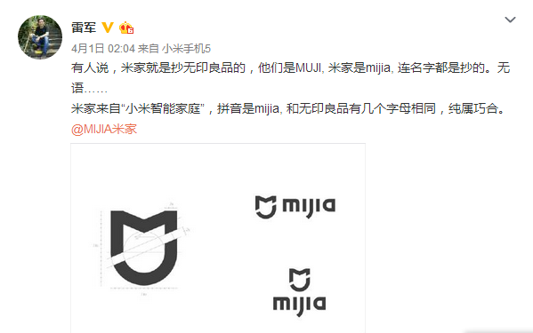 而在邹龙俊之后,小米联合创始人王川又在微博上语出惊人,称“充电宝只有两个品牌,小米和山寨小米。中国各大公司在以这种方式向小米致敬”。这瞬间又让小米此前的诸多黑历史被广大网友扒了出来。而小米新发布的米家品牌和电饭煲,更是被广大网友称为是在抄袭日本的无印良品。使得雷军也不得不在愚人节当天发微博大诉委屈。
