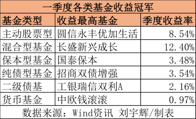 一季度货币市场维持宽松局面,市场利率不断下行,债券市场总体表现不俗,纯债基金普遍获得正收益。根据Wind资讯统计,近180只纯债基金一季度平均收益为1%,除少数基金之外绝大多数纯债基金都获得了正收益,其中有11只季度收益率超过2%,招商双债增强和东方添益分别取得3.54%和3.47%的收益率,在纯债基金中位居前两位。