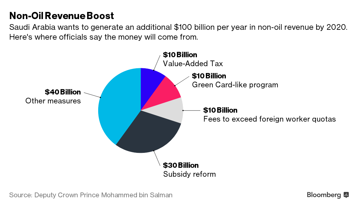 重新调整补贴计划,并将对能源、软饮料以及奢侈品征收增值税等税务。增值税收入将为沙特在2020年带来每年100亿美元收入,而补贴重组将为沙特每年带来300亿美元收入。