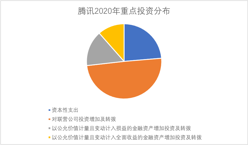 我们又整理了2020腾讯重点几个投资大类的支出情况,见下图