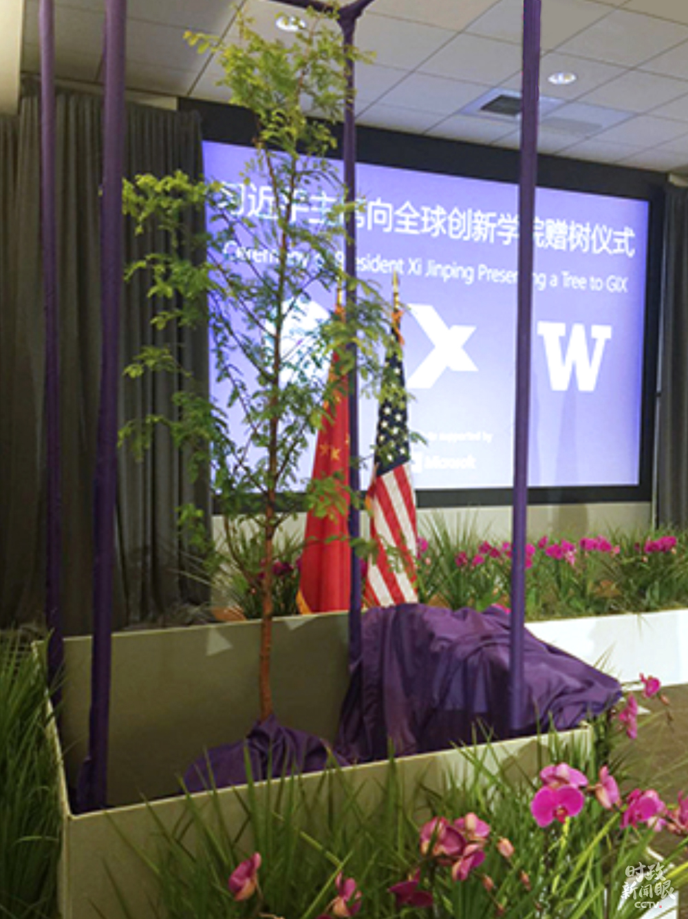 △2015年9月23日,习近平主席在参观美国微软公司总部时,向清华大学和华盛顿大学联合创办的全球创新交流学院赠送水杉树苗,寓意友谊常青,茁壮成长。(资料图)