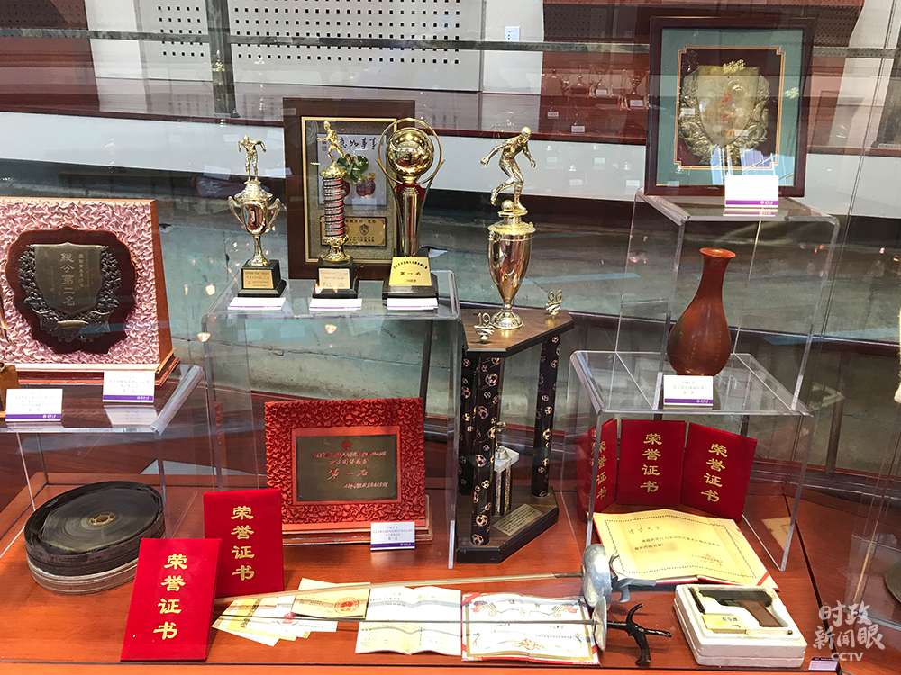 △陈列在体育荣誉室的奖杯、证书(总台央视记者许达拍摄)
