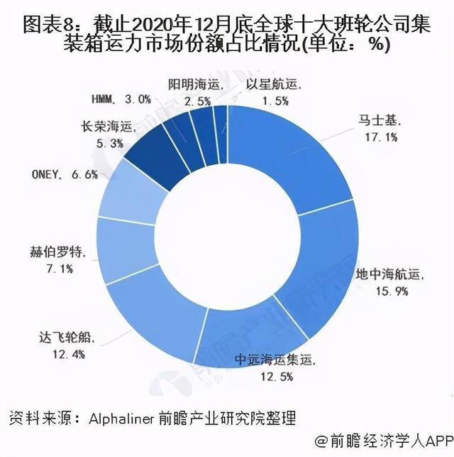 根据前瞻产业研究院数据,截至2020年底,全球班轮公司运力CR10达到83.9%,较2019年底提升0.9pct。其中马士基与地中海航运同属2M联盟;中远海运集运(中远海控全资子公司)和达飞轮船同属Ocean Alliance;赫伯罗特与ONE同属THE Alliance。
