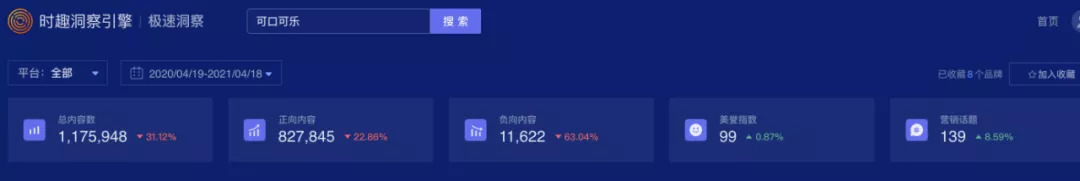 那么,无糖的天下,肥宅快乐水还有机会吗?对于此次两大品牌的动作,品牌营销表现到底如何,消费市场反馈如何?带着这些问题,下面将结合时趣洞察引擎的数据,从品牌整体传播表现、代言人营销、饮品行业等角度分享一些时趣洞察。