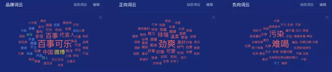 从正向词汇可以看到,百事主打的“劲爽”也非常受用户关注,用户对于可口可乐则更加注重口感。从负向词汇来看,“难喝、污染、质量问题”等词汇是两大品牌的高频词汇,消费者对于可口这一品类的关注更加聚焦在“口感、健康和环保”等方面,这也是品牌后续在营销过程中值得重点关注的方向。