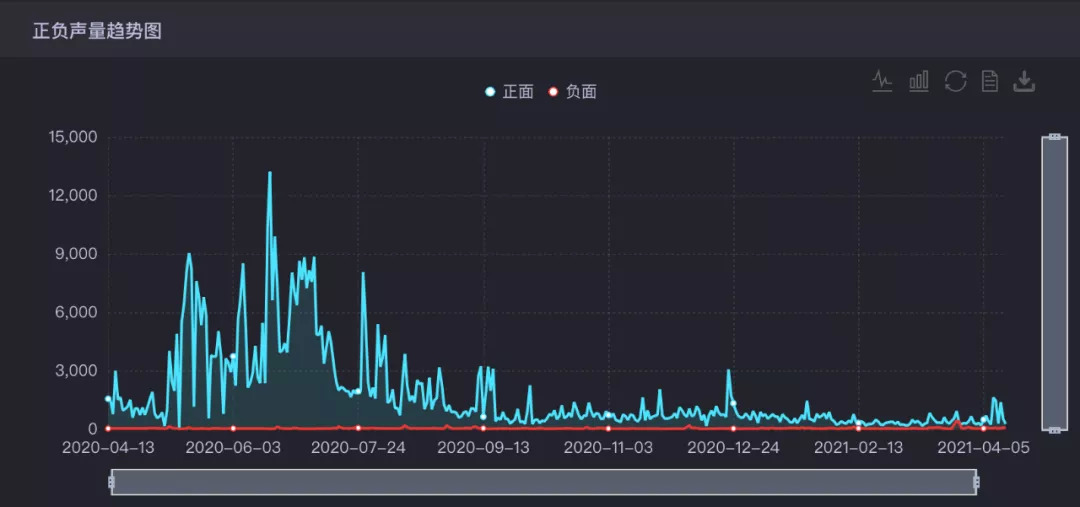 通过正负面声量趋势图来看,虽然网友在负向词云提及比较多的是“口感、健康和环保”方向的问题,但从正负声量趋势图和社交声量趋势图整体走势来看,两大品牌均正向声量占主导,并未出现极度的负面话题,负面内容属于正常范围。