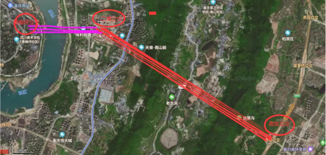 根据规划公示的信息:鹿角隧道起于二塘(渝南分流道)立交,止于鹿角(内环快速路)立交,全长约6公里,隧道设计标准采用城市主干道,设计速度60公里/小时,标准路幅采用双向六车道。