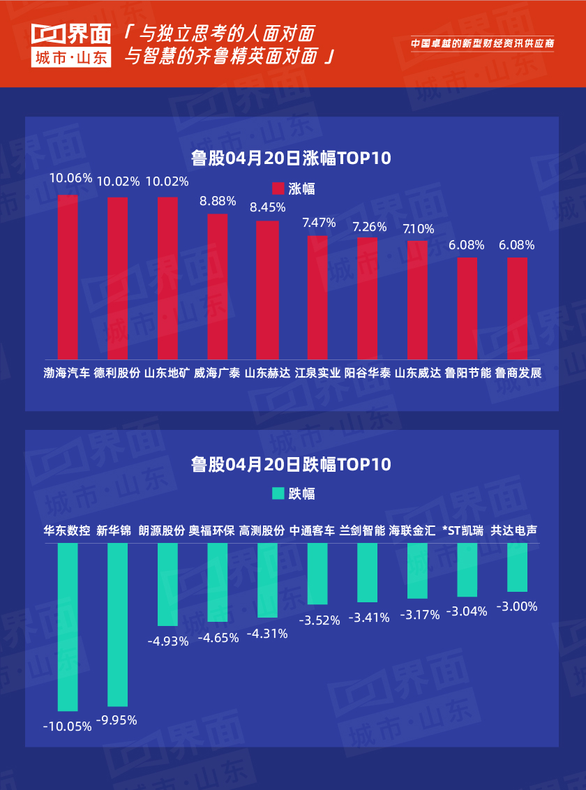 受大盘影响,4月20日,山东95股上涨,132股下跌。