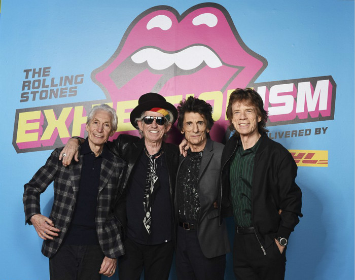 1962-1993年在滚石乐队中的比尔也参加了这个重磅的聚会。79岁的他带着穿得色彩鲜艳的家人一起出席了第一个回顾滚石50年的展览的开幕。