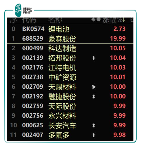 消息一出,4月19日,多氟多开盘后便迎来一波涨停。其他新能源板块比如锂电池方面,频频骚动,亿纬锂能,天齐锂业,赣锋锂业,天赐材料,华友钴业等大幅上涨。