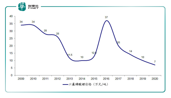 (2009-2020,六氟磷酸锂市场价格走势)