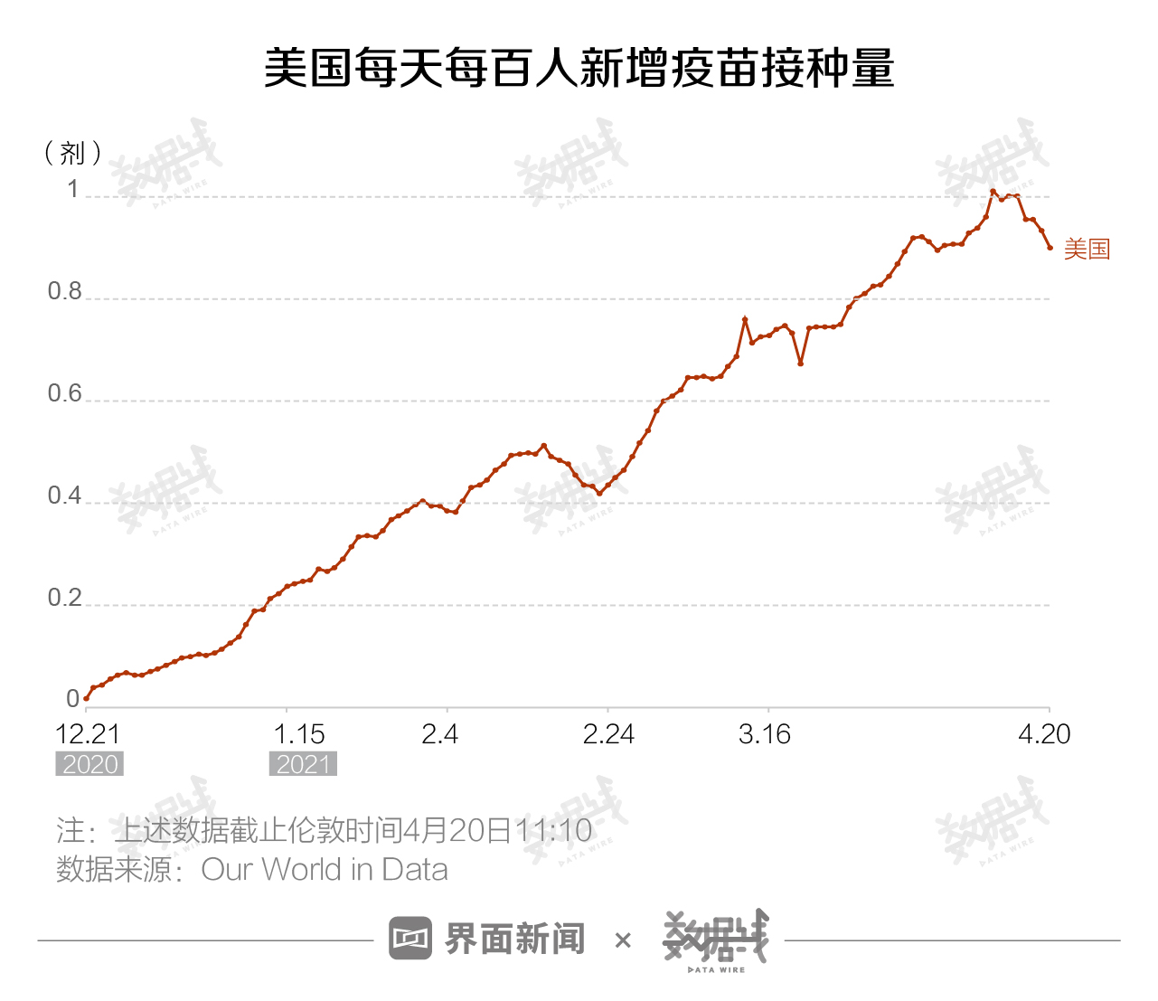 美国排名第四,且疫苗接种速度持续加快,4月中旬,每天接种1%人口。