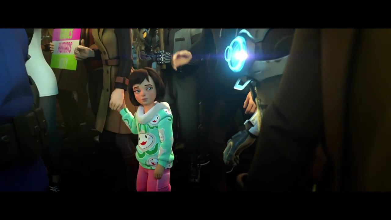 整个剧情里的观众,就给了这2个地方的观众特写,相信这是“我们是守望先锋”这部宣传短片里的人物: