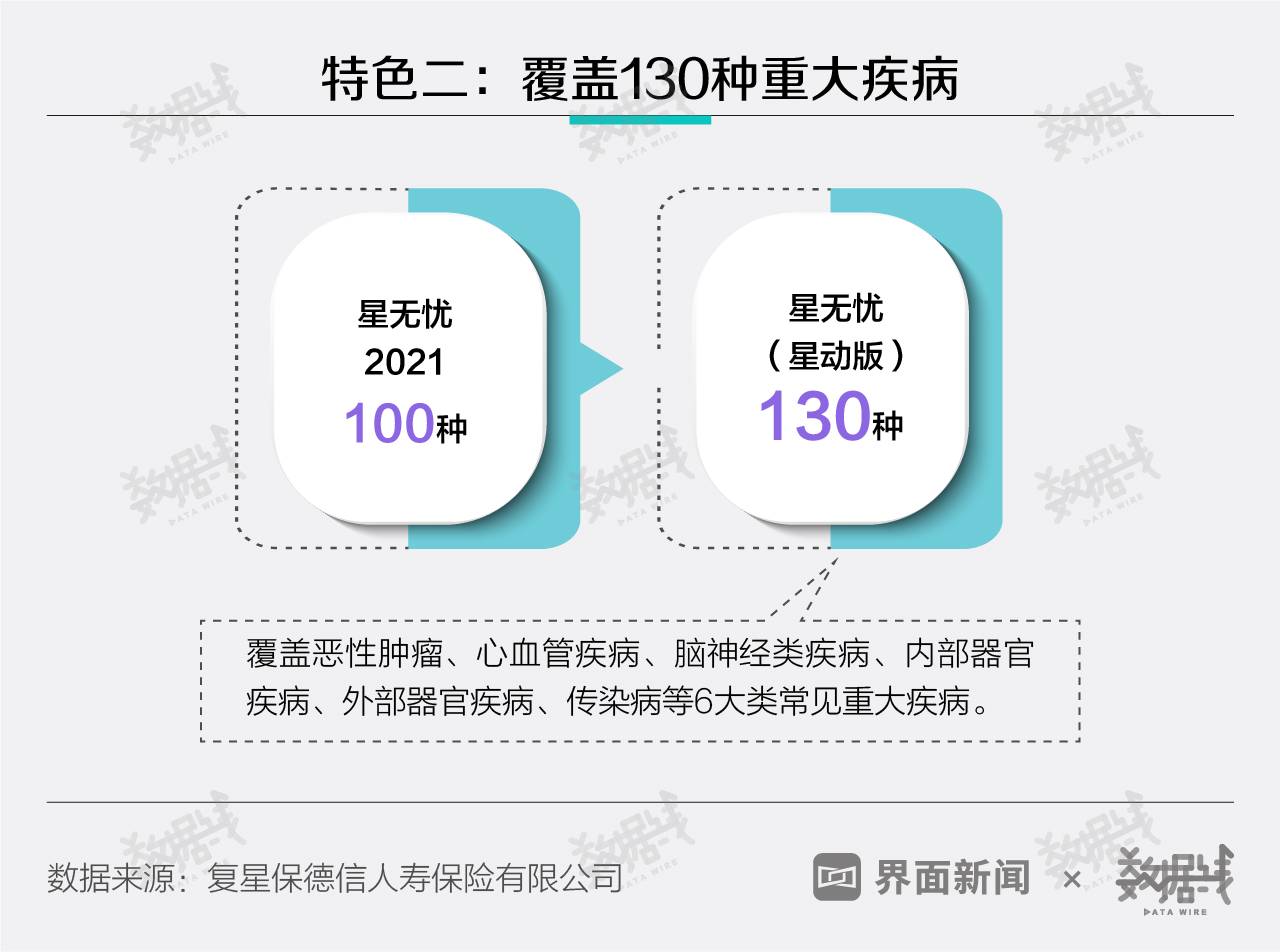同时,星无忧(星动版)重大疾病保险覆盖的病种数量更加丰富,从旧版的100种扩展到130种,包含了6大类常见重大疾病。