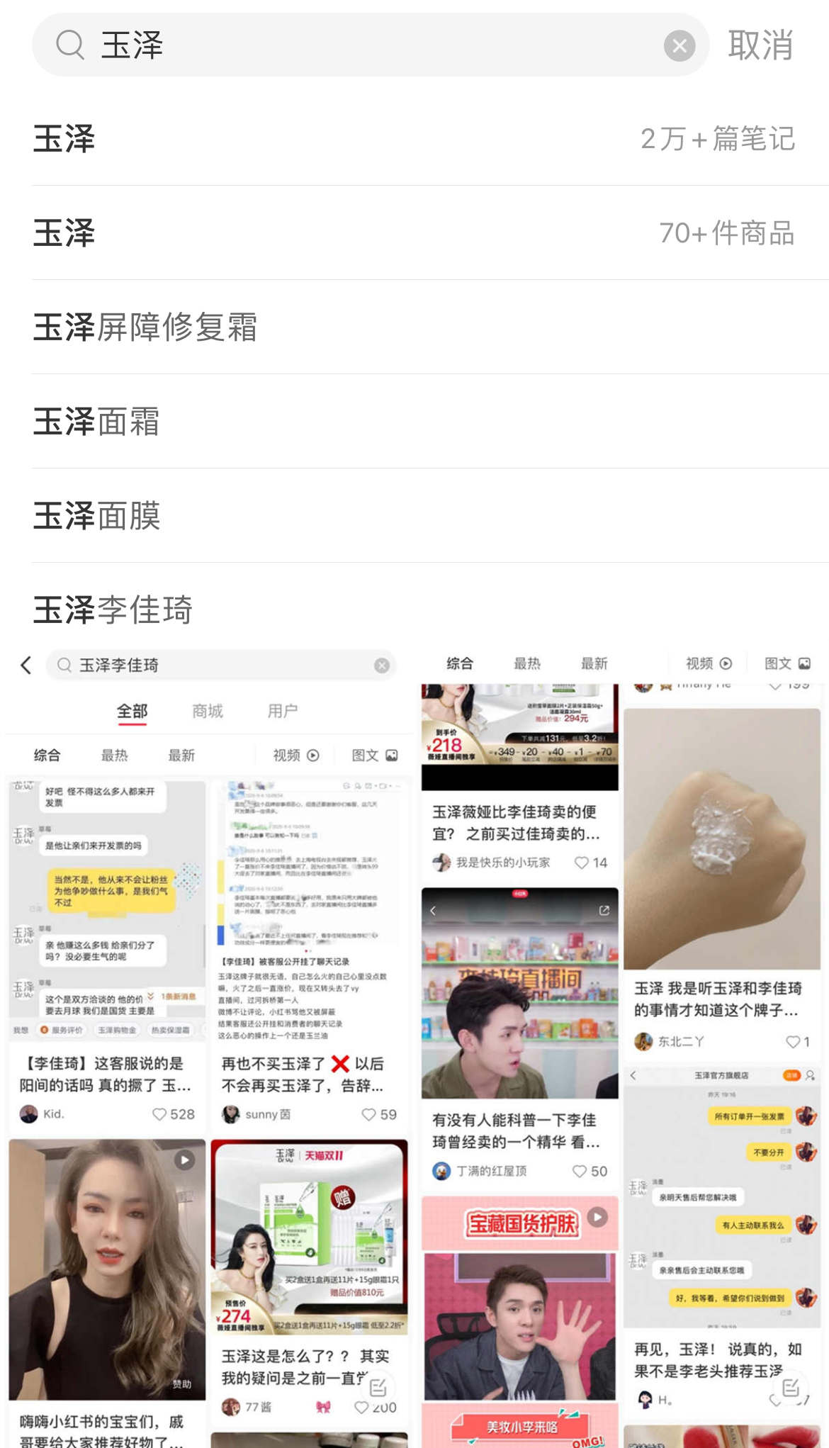 直到现在,小红书上玉泽仍与李佳琦高度关联。点进话题词,高赞笔记基本上是李佳琦粉丝表示“再也不买玉泽了”。