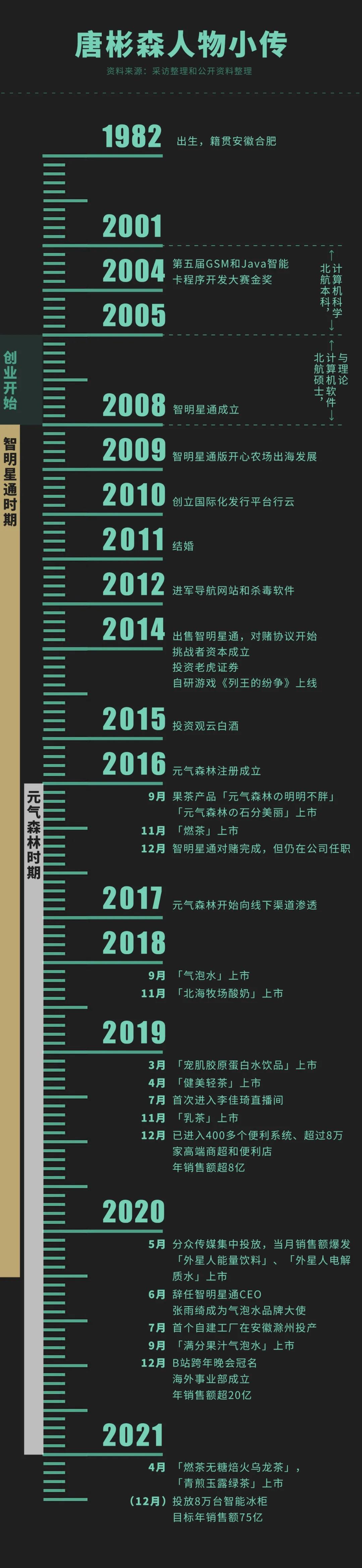 虽然“游戏大佬转行做消费品”是唐彬森如今最知名的标签,但元气森林已经是他至少第5个能叫上名号来的创业项目。