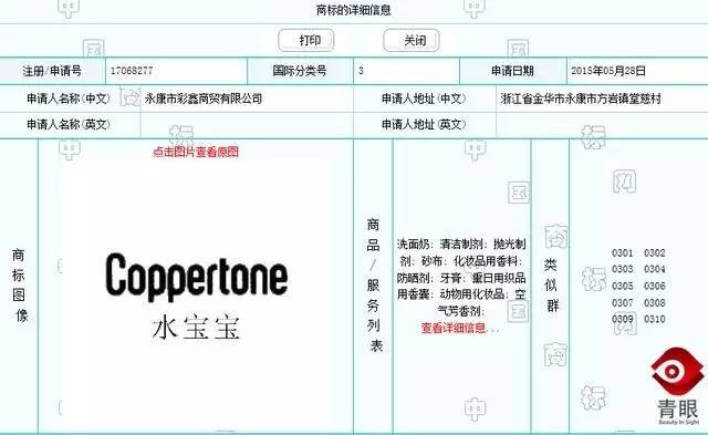 并且,“水宝宝Coppertone”注册的还是第三大类,其中就包括防晒产品。所以市面上的标识为“水宝宝Coppertone” 的产品,其实是浙江某商贸公司出品/监制的防晒霜。所以Coppertone现在正式的中文名称叫确美同。