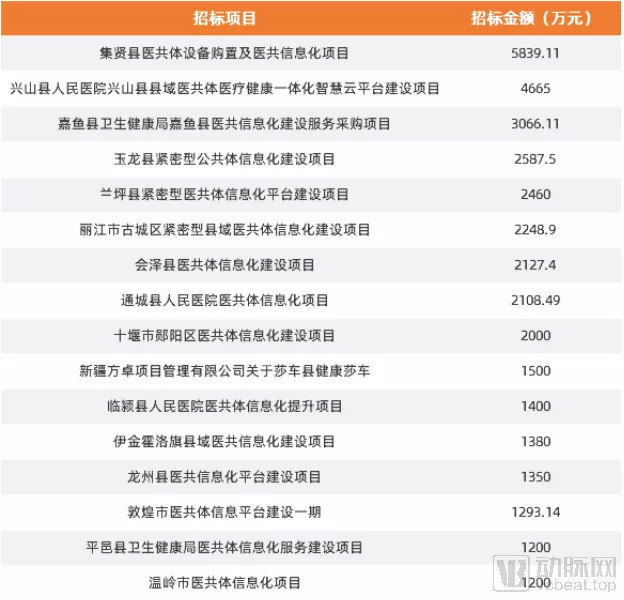 2020年4月-2021年4月医联体、医共体下新一代医院管理系统建设招标数据(部分)