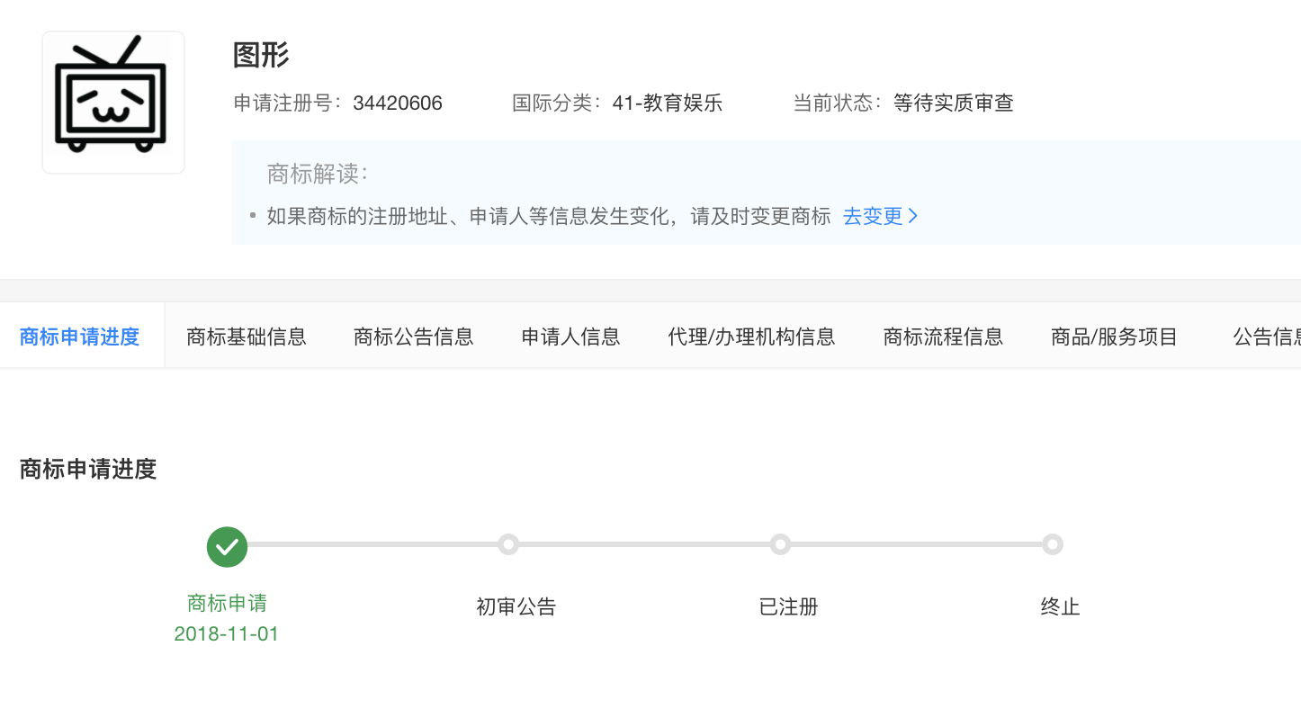 此外,天眼查信息显示,上海幻电信息科技有限公司近日还申请了多个“小电视”图形商标(和官方目前使用的小电视周边为同一系列),目前商标状态为“商标申请中”。