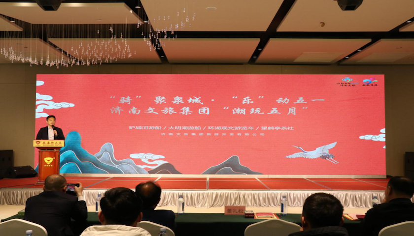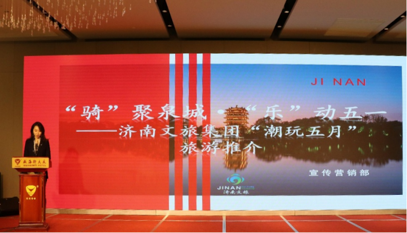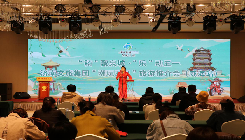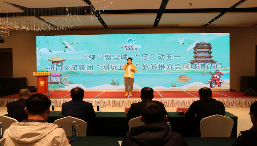 4月22日上午,由济南市文化和旅游局指导,济南文旅集团主办的“骑”聚泉城·“乐”动五一济南文旅集团“潮玩五月”旅游推介活动在威海市举办。济南市文化和旅游局党组成员、正处级领导干部李昭,济南文旅集团副总经理王学军,威海市文化和旅游局党组副书记、副局长、三级调研员董礼松,威海文旅集团总经理、山东省旅游行业协会副会长、威海市旅游行业协会党委书记、会长姜文一,以及威海市文旅界、媒体界约100人参加了此次活动。