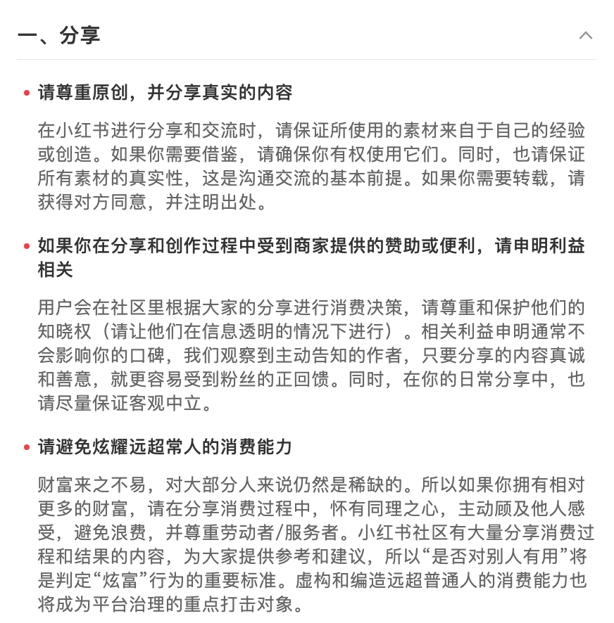 内容平台树立社区规范属于常规操作,例如B站就是一个需要回答社区规范问题才能注册会员的平台。但此次小红书提出的这份“规则”,是其第一次正式上线社区公约。