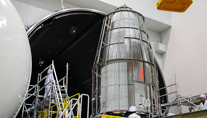 实践十号卫星整体为柱锥组合体形状,高约5.2米,直径超过2米。19个实验载荷分别装在29个铝合金箱子里,总共近600公斤。