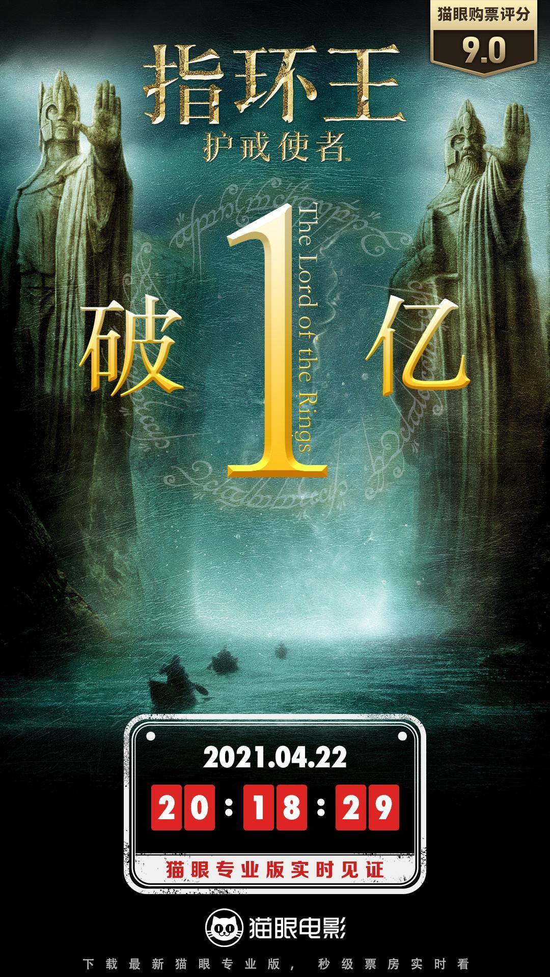 @猫眼电影 微博消息,根据猫眼专业版显示,截至4月22日20:18,《指环王:护戒使者》中国内地累计票房已经破1亿元。目前是内地重映第7天,重映票房达4380万元。