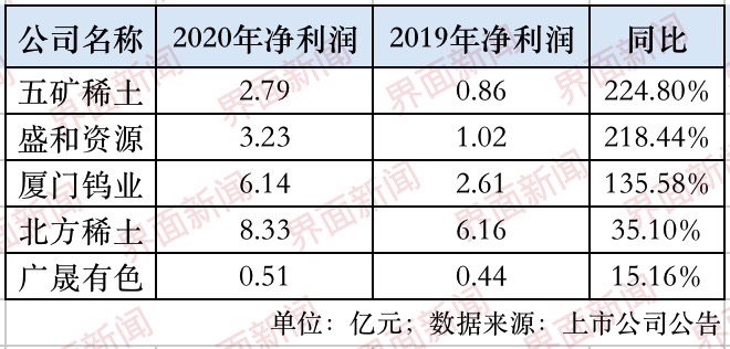 受益于稀土价格上涨,相关稀土上市公司净利暴增。