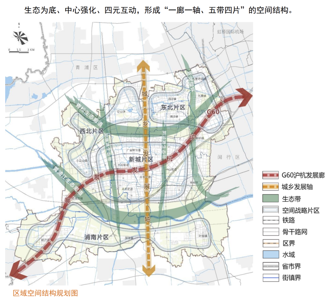 除了数字经济产业外,松江新城的“新”还体现在空间格局上。除了松江已经建好的片区外,南部的松江枢纽在空间格局上也将大有作为。
